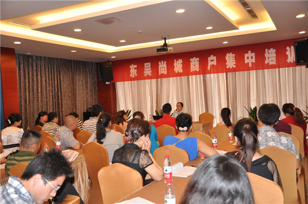 為確保東吳尚城7月中旬順利開業(yè),6月3日起,開發(fā)公司組織開展了入駐商戶集中培訓(xùn)活動,40余家簽約商戶參加培訓(xùn)。在當(dāng)天上午的培訓(xùn)中,開發(fā)公司相關(guān)部門負(fù)責(zé)人向商戶介紹了工程進(jìn)展、入場裝修注意事項(xiàng)以及物業(yè)管理等方面的事宜,并詳細(xì)解答了商戶提出的問題。