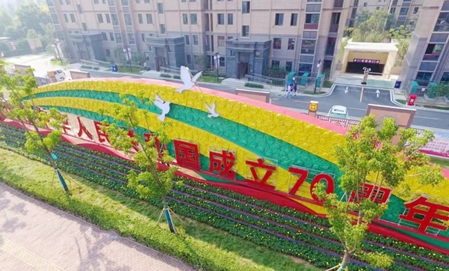 為迎接新中國(guó)成立70周年重大節(jié)日活動(dòng),切實(shí)營(yíng)造熱烈慶祝新中國(guó)成立70周年,開發(fā)公司在氛圍實(shí)施中通過景觀協(xié)調(diào)、做到點(diǎn)線面的統(tǒng)一結(jié)合,相互銜接、相得益彰的整體效果,提升園區(qū)的城市內(nèi)涵品位,展示園區(qū)迎接建國(guó)70周年。