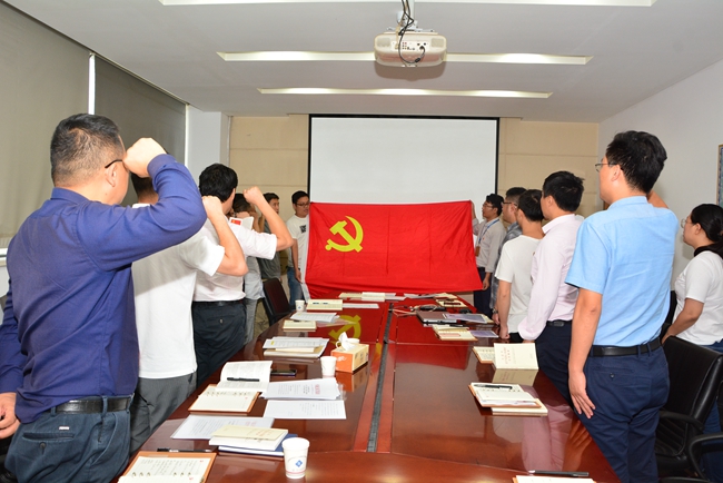 緊接著,開展“四重”活動?;顒忧肮拘姓耸虏繉iT從園區(qū)檔案室調(diào)取每一名黨員入黨志愿書,將內(nèi)容拍好發(fā)到每人,重溫入黨時(shí)的難忘經(jīng)歷。在劉建華書記的帶領(lǐng)下,右拳高擎,神情莊重,面對鮮紅的黨旗鄭重宣誓,抒發(fā)對黨的忠誠,踐行黨的宗旨,維護(hù)黨的形象和愛黨愛國情懷。