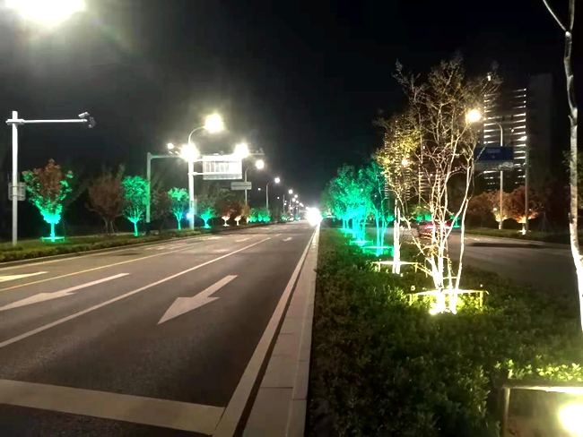 開(kāi)發(fā)公司項(xiàng)目管理過(guò)程中,重點(diǎn)把控?zé)粼搭伾?、照度及燈具造型,在燈光運(yùn)用上主要使用白、黃、綠三色,突出西湖西路城市主干道的夜景效果。在施工中,克服冬雨季施工、大氣管控和車(chē)流量大等不利因素,嚴(yán)格控制施工工藝,打造高質(zhì)量工程。夜景工程亮燈后為園區(qū)南部區(qū)域夜景增光添彩,美化了園區(qū)環(huán)境、提高了園區(qū)品位。