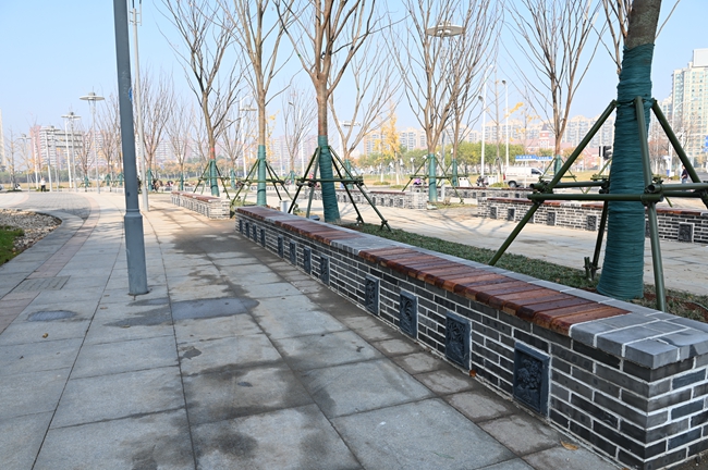 此次針對(duì)蘇州公園東北角處進(jìn)行重新栽植18株20CM的彩葉樹(shù)種的櫸樹(shù)和日本矮麥冬進(jìn)行栽植,同時(shí)為迎合蘇州街西入口整體景觀效果相協(xié)調(diào),增加更具“蘇式”韻味景觀長(zhǎng)條形式的坐凳滿(mǎn)足周?chē)用裆钚蓍e。