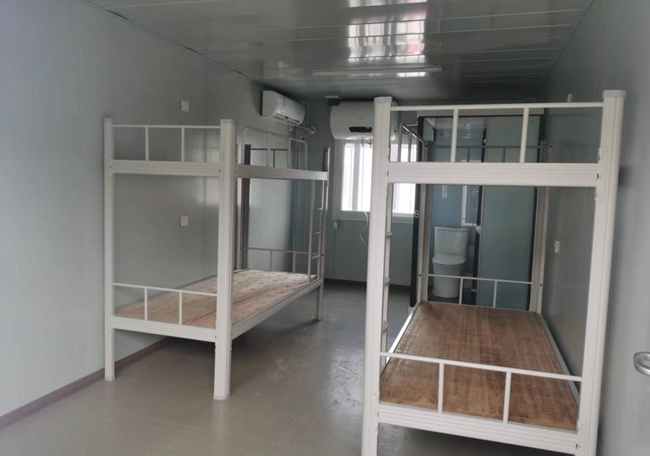 “健康驛站”共設(shè)置集宿區(qū)、核酸檢測區(qū)及生活服務(wù)配套區(qū)三個區(qū)域,其中集宿區(qū)共有266間住宿房,每間均配置衛(wèi)生間、淋浴間、高低床、空調(diào)和熱水器,每間可住4人,項(xiàng)目總可容納1064人。