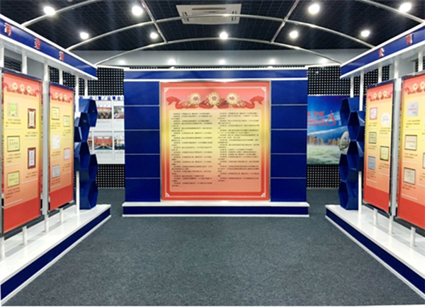 陳列室涵蓋了開發(fā)公司自2007年3月成立以來9年的歷史內(nèi)容。陳列室共分前言、領(lǐng)導(dǎo)集體、親切關(guān)懷、重大活動、業(yè)務(wù)建設(shè)、公司榮譽、機構(gòu)沿革、大事記、企業(yè)文化、公司愿景等10個部分。結(jié)合圖片、實物、音頻、視頻等多樣化的展陳形式,為參觀者全面呈現(xiàn)出公司的發(fā)展歷史。
