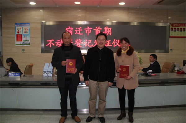 市國土局局長趙昌說:“園區(qū)不動產(chǎn)登記走在全市前列,今天宿遷市首期不動產(chǎn)權證書的正式頒發(fā),標志著不動產(chǎn)統(tǒng)一登記制度在園區(qū)范圍內(nèi)全面啟動?!?