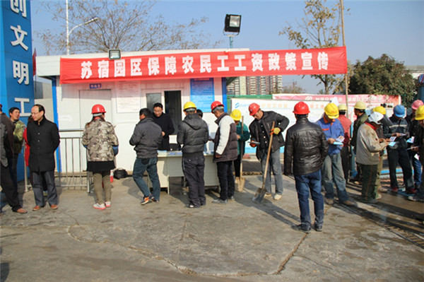 12月2日上午,為提高農(nóng)民工維權(quán)意識,園區(qū)勞動保障和社會事業(yè)局、規(guī)劃建設局到碧桂園高層區(qū)項目施工現(xiàn)場開展保障農(nóng)民工工資政策宣傳活動?;顒悠陂g,共發(fā)放《教你維權(quán),農(nóng)民工工資案例審編》《信訪手冊》《勞動者維權(quán)實用手冊》等相關(guān)資料200余份,現(xiàn)場接待群眾咨詢200多人次。