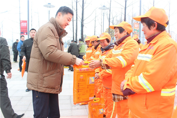 1月18日上午,園區(qū)黨工委委員、管委會副主任、規(guī)劃建設局局長許紹杰帶隊慰問了奮戰(zhàn)在一線的城市維護作業(yè)人員,向他們送上了春節(jié)的問候。